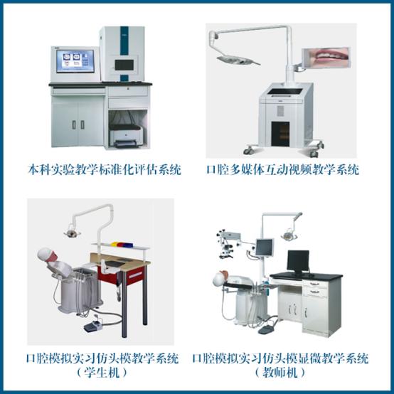 拥有牙科综合治疗椅13台,其中设有标准化示教诊室一间,配套有13台洁牙机、高、低速手机,主要承担牙周病学、口腔黏膜病学、口腔预防医学、口腔修复学、口腔颌面外科学等实验教学,可用于口腔基础健康检查、口腔修复上下颌取模、龈上洁治术、龈下刮治术、绷带包扎等实践操作。牙科治疗椅同临床使用设备相同,完全可以模拟临床操作,13台牙椅可供26名学生同时使用,互为医患角色,进行模拟临床实践操作,可真切体会临床实际诊疗操作。