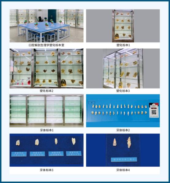 配置牙体标本384套、塑化标本63件,主要用于口腔解剖生理学实验课实体模型教学。其中塑化标本系统全面、内容丰富、解剖清晰,该技术是用多聚酯替代人体组织中的水和部分脂肪,把人体组织保存得与活体一样鲜活的特殊技术。各种标本为学生熟悉、掌握人体解剖结构有深刻印象,提升了学习兴趣和积极性。每个标本配置对应的二维码,学生可扫描二维码,通过多方位旋转三维立体的图片,更加直观感受标本详细解剖结构,加强了理论知识的掌握。
