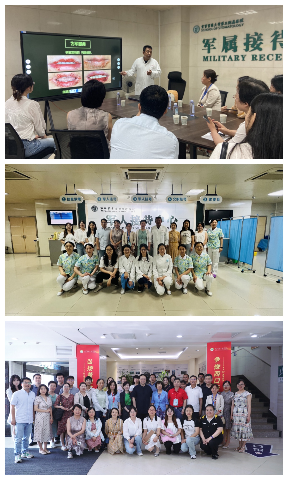 会议期间,蔡扬带领牙周黏膜团队到空军军医大学口腔医院黏膜科和西安交通大学口腔医院参观学习。