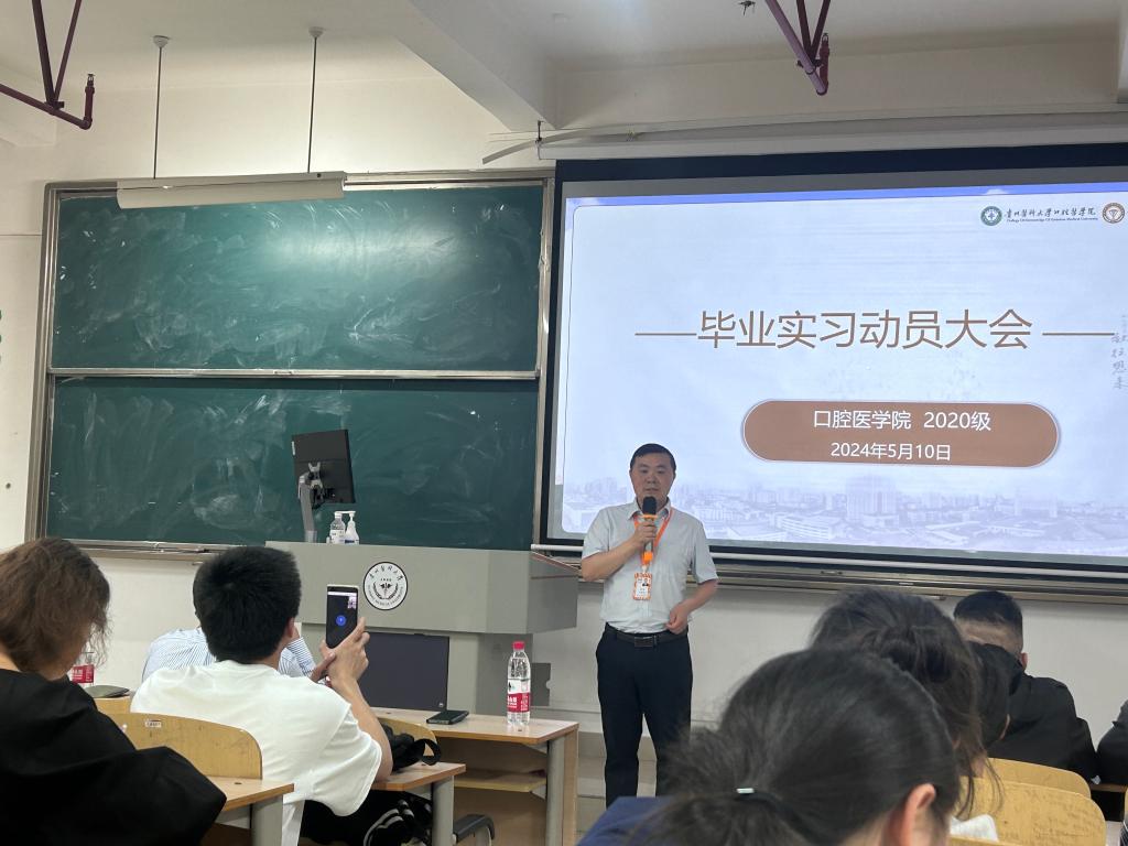 在贵州医科大学北校区4201教室召开2020级毕业实习动员大会。