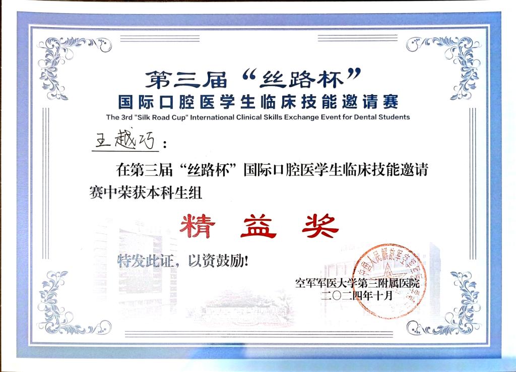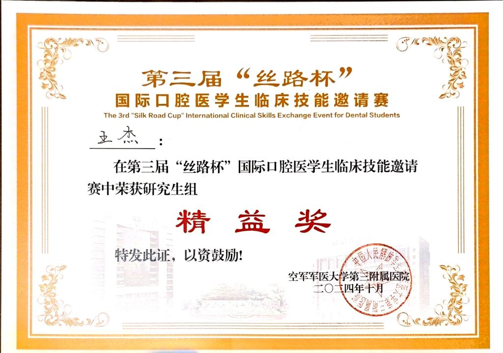 本次赛事分设“本科生组”和“研究生组”两个组别,本科生组设置心肺复苏术(含AED)、全瓷冠牙体预备、橡皮障下II类洞牙体形态预备、口内缝合术4项经典项目;研究生组设置橡皮障下显微根管治疗、下颌阻生齿拔除术和临床思辨项目。经过各项目的激烈角逐,王杰、王越巧均获得了“精益奖”。