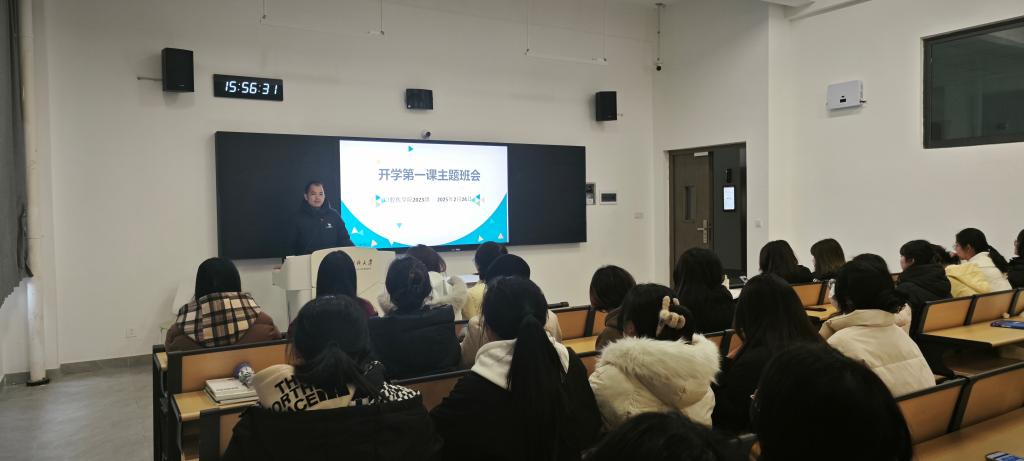 各班辅导员分别给自己所带班级学生开展“开学第一课”主题班会,有序拉开了新学期学习生活序幕。