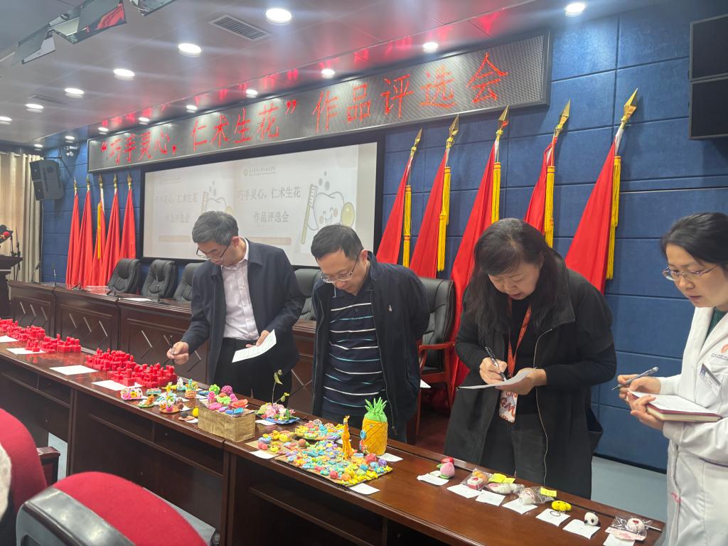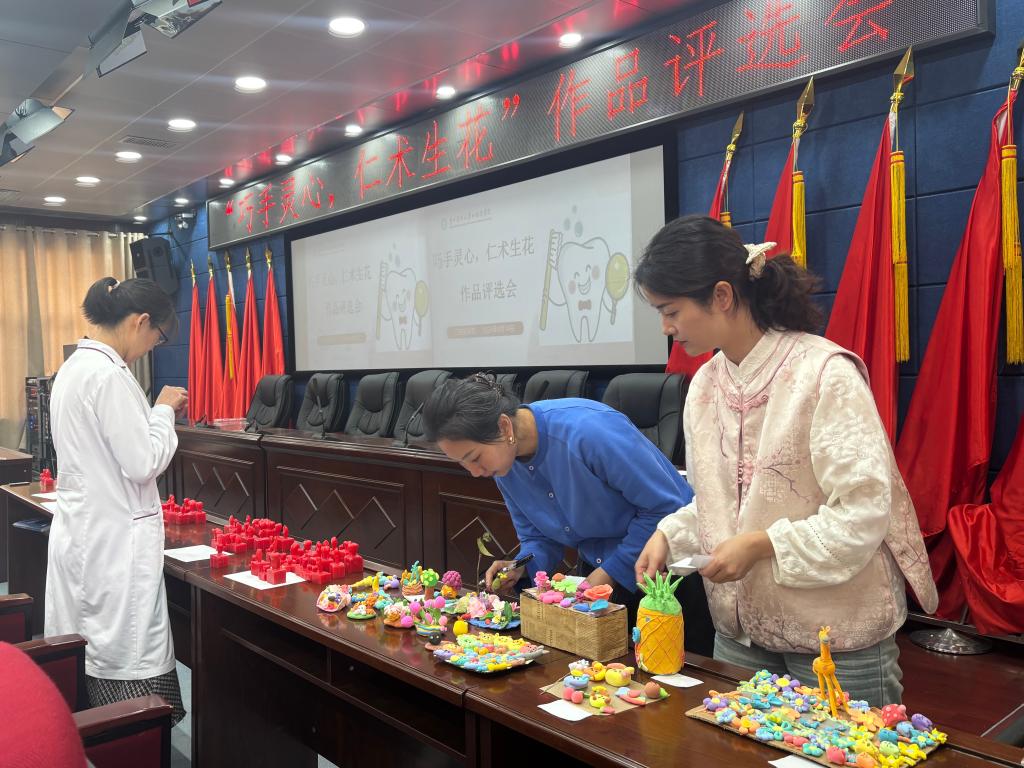 评审过程中,院领导充分肯定学生作品展现的创新思维与专业潜力。院党委书记张军梅强调创作应注重比例协调与功能模拟,希望学生将精益求精的态度融入临床实践。党委副书记、院长马洪指出,手工技能训练是口腔诊疗操作的基础预演,每件作品都是理论与实践结合的成果。