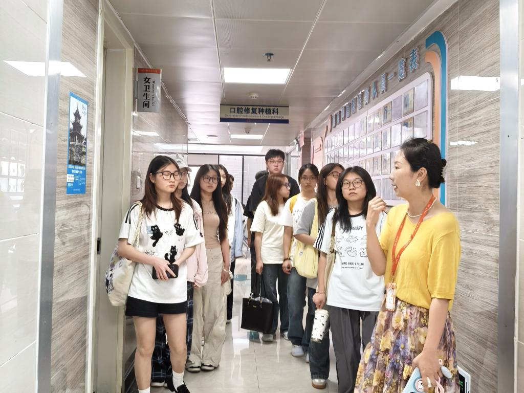 胡睿带领实习生深入了解医院布局,参观文化院史文化角落,通过解读标志性雕像、文化标语,回溯医院发展脉络,厚植“团结、协作、活力、进取、包容”的院训精神。实习生实地参观了口腔临床及医技科室,直观感受诊疗场景。参观过程中,实习生们认真记录,对即将开展的实习工作充满期待。