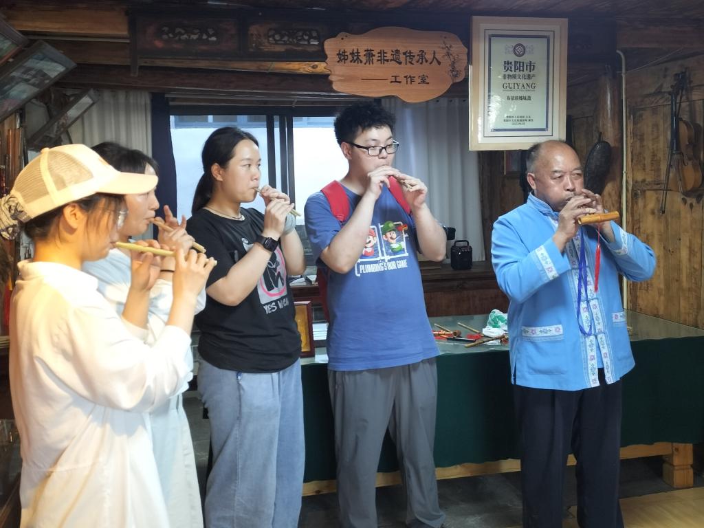 同学们分组体验了扎染、姊妹萧吹奏、灰豆腐制作三项非物质文化遗产技艺,在传承人的指导下,同学们亲手触摸到传统文化的温度,深刻感悟到非遗技艺的精妙。大家纷纷表示,作为新时代医学人才,既要精研医术,更要厚植文化底蕴,在传承中华优秀传统文化中汲取奋进力量。