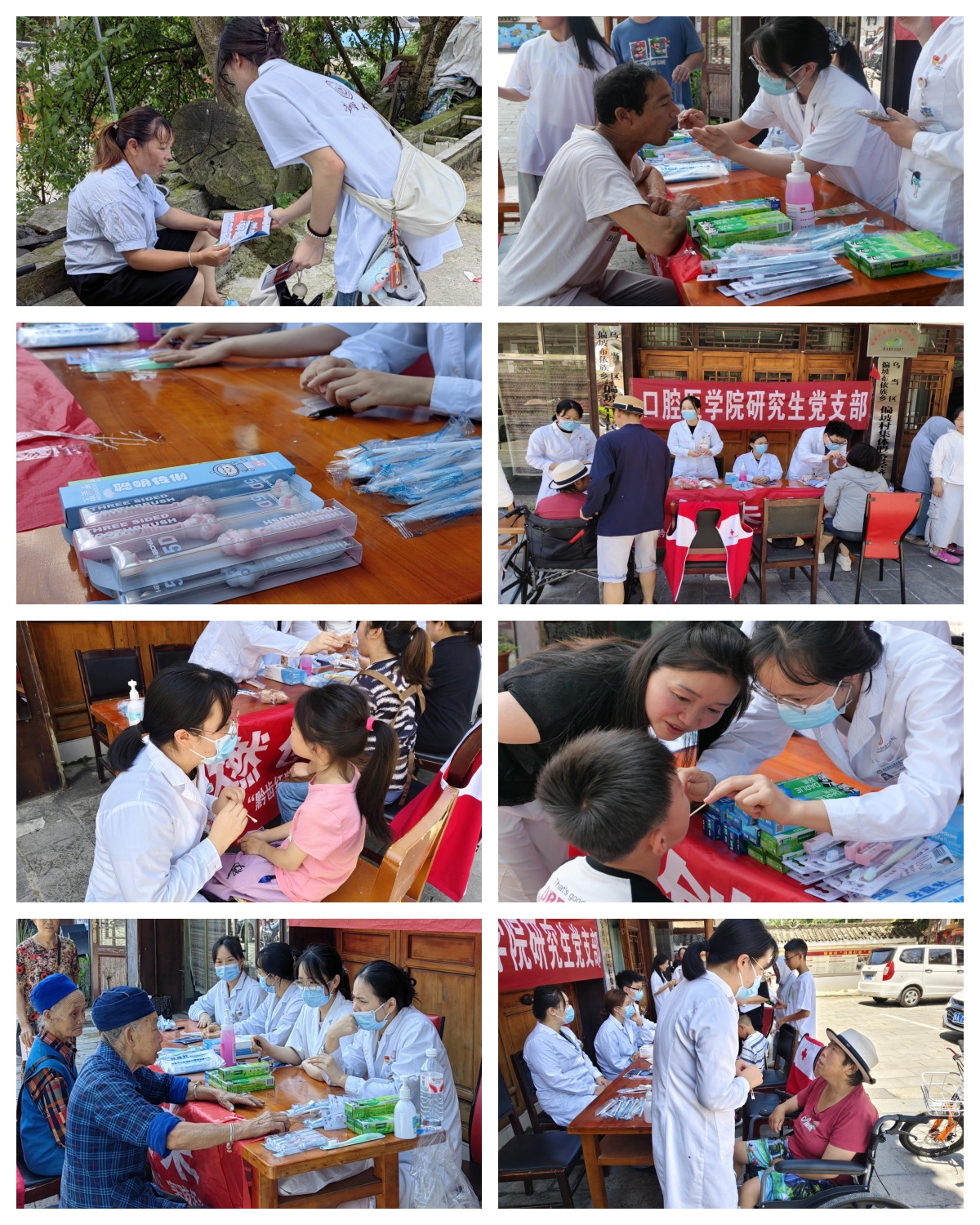 研究生党支部联合“黔齿红韵 康途偏坡”社会实践团开展口腔义诊活动,以专业守护乡邻健康,用赤诚传递医者温情。活动现场,医务人员针对牙周病、龋齿的防治,正确的刷牙方法,牙具甄选等问题运用通俗易懂的语言为村民们进行宣讲,并根据每位村民的口腔状况量身定制个性化的诊疗方案,面对村民们提出的各种疑问,医务人员耐心细致的进行解答。义诊结束后,实践团送上了牙刷、牙膏等口腔护理用品,鼓励大家坚持早晚刷牙、饭后漱口,让护牙成为日常生活中的良好习惯。