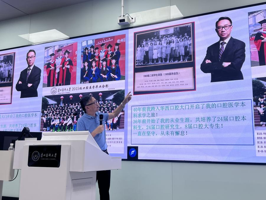 马洪从办学宗旨、师资队伍、基础设施、教学质量、管理体系及科研创新六个方面,系统梳理口腔医学从传统牙科到现代精准医疗的发展历程。他重点阐述"五维度"育人模式:通过党团建设筑牢学生思想根基,借助社会实践深化学生的专业认知,依托技能竞赛锤炼学生的临床能力,拓展学生教育的覆盖广度,推动创新创业项目落地见效,致力于培养兼具专业能力与社会责任感的复合型人才。