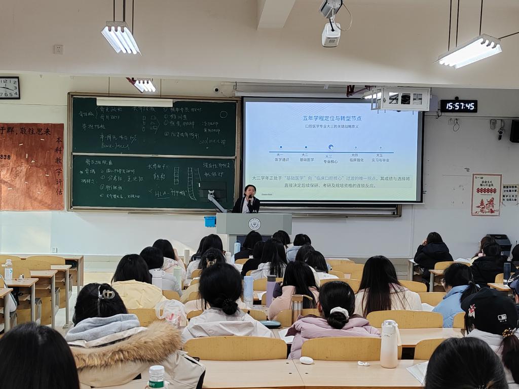 本次讲座围绕口腔医学专业大三阶段的发展需求,系统贯通了专业学习、升学准备与职业规划等重要环节,致力于为学生成长提供清晰指引,不仅有助于学生筑牢专业基础、树立长远发展观念,也为其未来在口腔医学领域深入发展与践行医者使命奠定了坚实的规划基础。