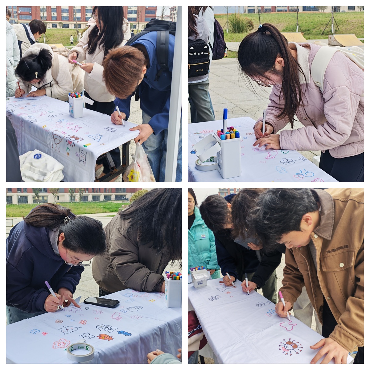 在学生活动中心空地前举办“‘齿’间传暖,心承雷锋”主题活动。