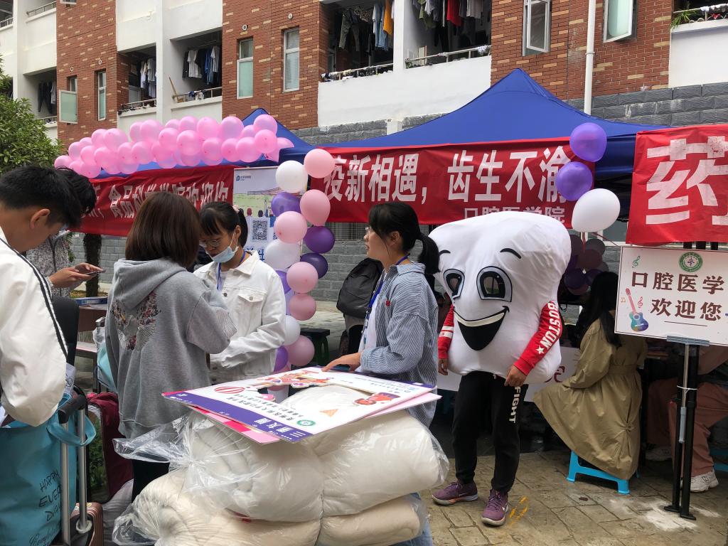 今年迎新分批次进行,从9月16号持续到9月18号。本次迎新以“疫新相遇,齿生不渝”为主题。