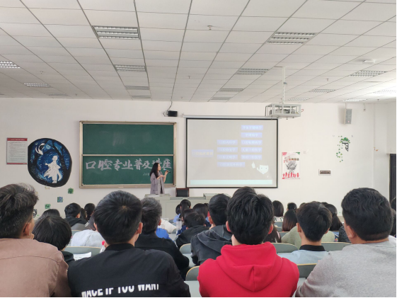 之后朱铭慧老师分别从口腔专业基础课程、口腔临床课程以及口腔保健三个方面对同学们进行讲座。朱老师强调,只有打好基础,稳扎稳学,在进行专业课学习时才能轻松容易。作为未来的口腔医生,本人务必掌握正确的刷牙方法及牙线使用方式且能对周围的人群进行正确的口腔保健知识宣传,这是专业的体现。