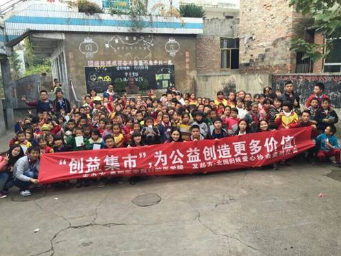 创意集市的志愿者们来到了贵阳市云岩区曙光小学。从大学城到曙光小学,志愿者们经过多次转车,一路上风尘仆仆。此次活动由陈阳洋和刘卓两位同学带领。
