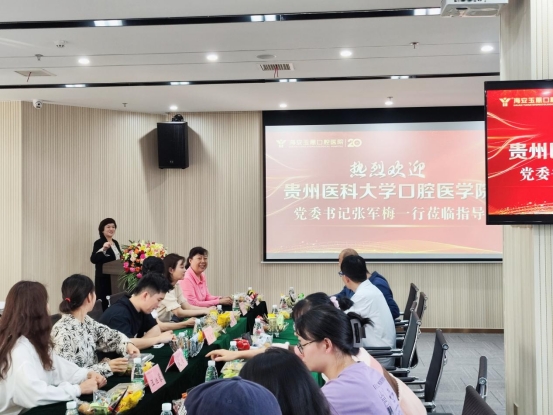 江苏玉蕙口腔医疗科技集团周文清围绕集团的基本情况、师资资质、晋升渠道、教学工作等方面作详细介绍,表示此次合作以“合作双赢”为切入点,努力建立稳定性联系,共同打造校企合作品牌。