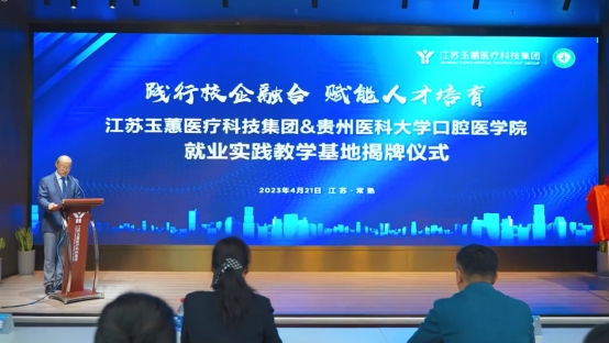 仪式上,江苏省常熟市卫健委主任、党委书记黄晓东介绍了常熟市的基本情况、发展状况以及医疗卫生现状等情况。他强调,江苏玉蕙口腔医院医疗先进,理念创新,表达了对本次校企合作的肯定与支持,希望双方加强沟通交流,着力形成合作机制,有序推进共建工作。