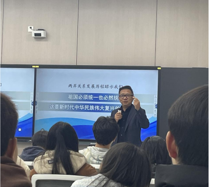 课上,马洪紧扣主题,引经据典,围绕“理论来源”“丰富内涵”“实践要求”三个方面,对新时代党解决台湾问题的总体方略进行了多方面、多角度、多层次的解读。