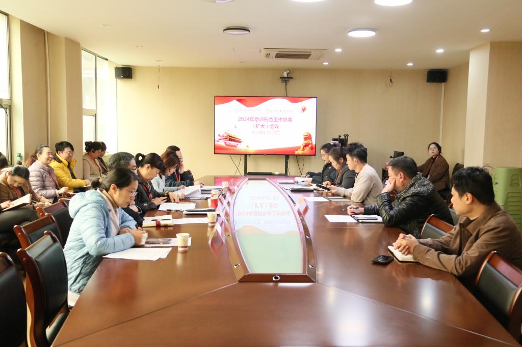 2024年(网络)意识形态工作情况、意识形态领域风险隐患排查情况、网络舆情管理工作情况及学校意识形态工作专项督查现场反馈情况,各党支部、各科室(部门)汇报了本科室(部门、支部)意识形态工作及风险隐患研判情况。