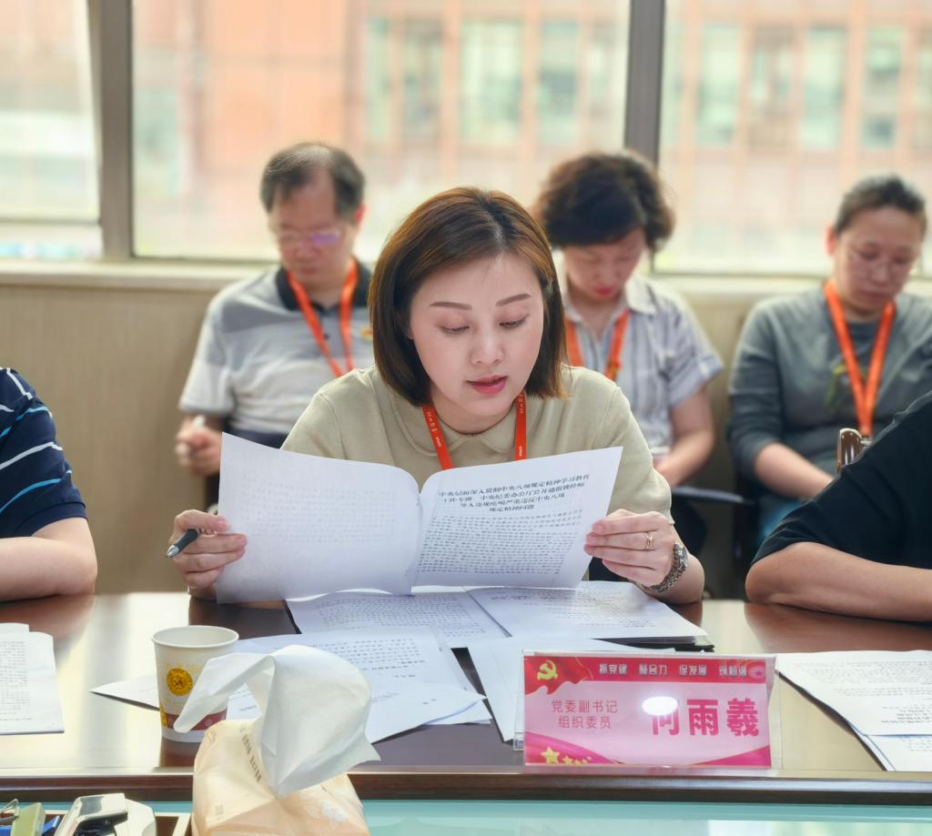 会上,张军梅领学《锲而不舍落实中央八项规定精神,以优良党风引领社风民风》——《求是》2025年第10期;党委副书记、院长马洪领学《习近平关于加强党的作风建设论述摘编》——坚持正风肃纪反腐相贯通;党委副书记何雨羲剖析深入贯彻中央八项规定精神学习教育有关问题答复(九),深入贯彻中央八项规定精神学习教育工作提示(十)(十一),中央层面深入贯彻中央八项规定精神学习教育工作专班、中央纪委办公厅公开通报的魏栓师等人违规吃喝严重违反中央八项规定精神的典型案例。