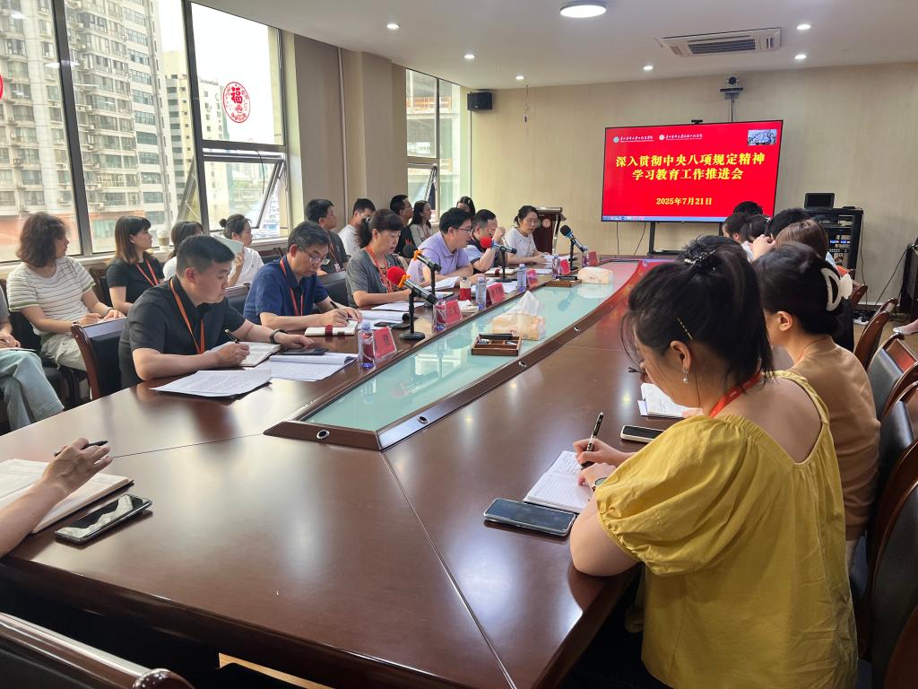 召开深入贯彻中央八项规定精神学习教育专题会。学校党委组织部副部长蔡炼、院党政领导班子成员出席会议。会议采用线上线下相结合的方式举行,全体行政人员参加线下会议,出差院领导、临床医技科室负责人及党支部书记参加线上会议。会议由院党委书记张军梅主持。
