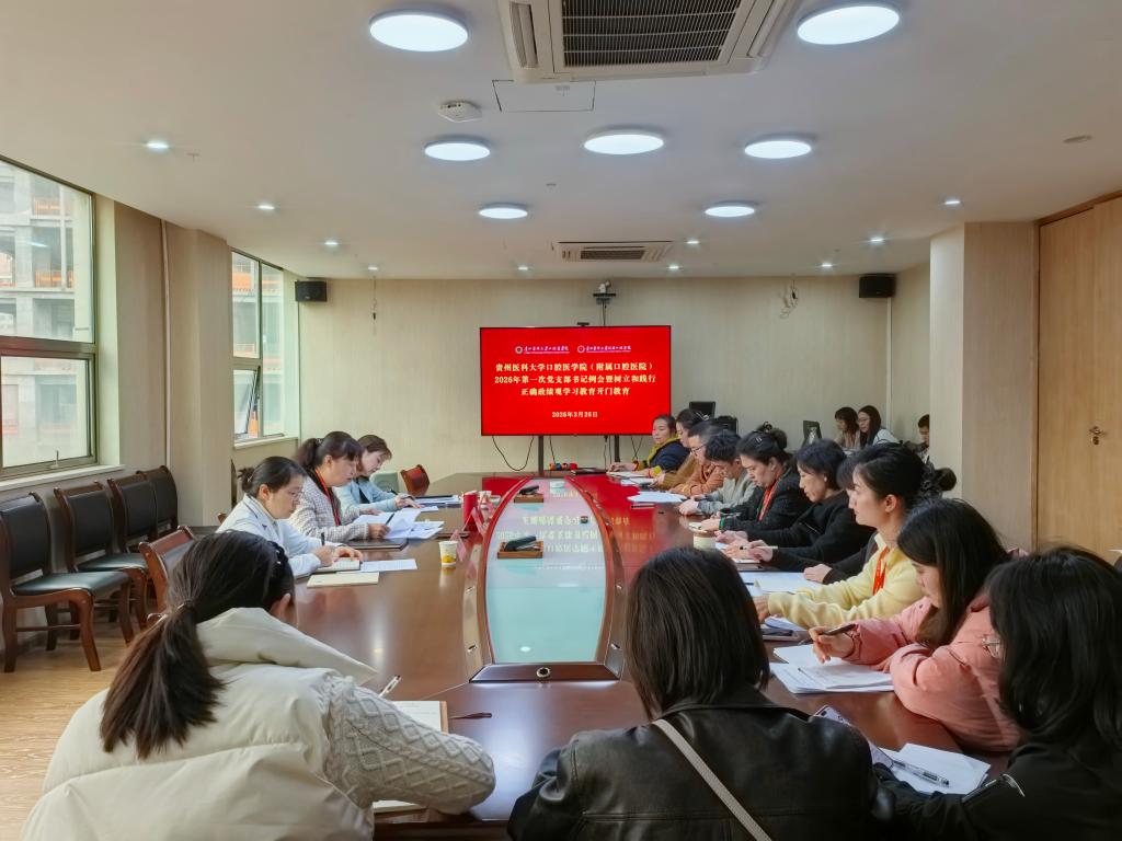 在综合会议室召开2026年第一次党支部书记例会暨树立和践行正确政绩观学习教育开门教育。院党委书记张军梅、党委副书记何雨羲、党委委员刘洪静出席会议,党委办公室成员、各党支部书记及支委参加会议。会议由张军梅主持。