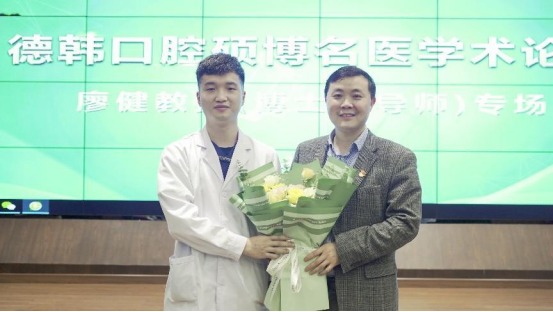 2021届规培结业学员杨童景分享了任职德韩口腔医院的成长历程和丰富的工作经验;廖健介绍了自己学习经历和修复种植的研究成果,并以“自体骨环移植+同期种植体植入的临床应用”为题进行学术讲座及病例分享。