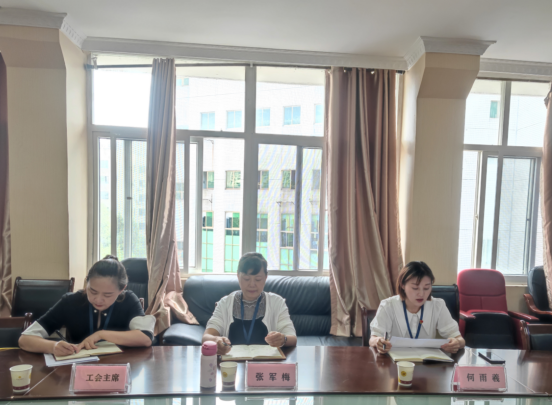 在行政楼五楼会议室召开了“工会工作会议”。党委书记张军梅、党委副书记何雨羲出席会议,各分工主席张忠平、周天、邹苑、李文凤,经审委员会委员魏颖、高灵,女工委员会委员廖健参加会议。工会主席杨蕾主持会议。