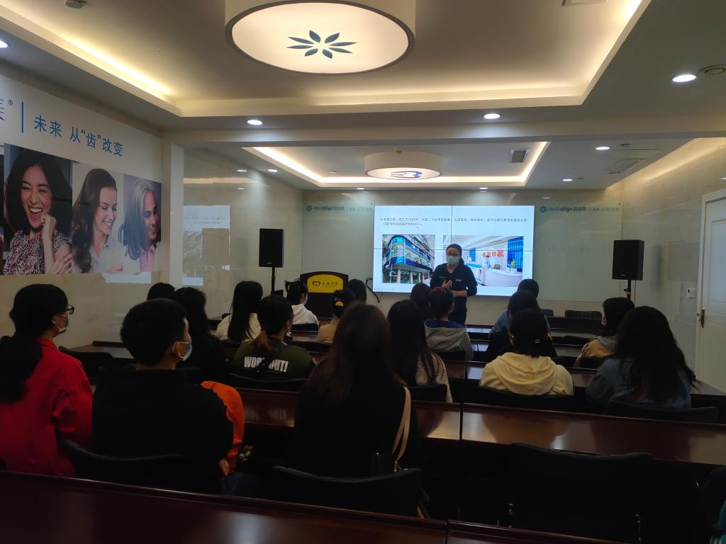 贵阳云岩名谊口腔医院王院长向同学们介绍了名谊口腔医院的发展史、服务理念、诊疗方向以及当前的发展状况,并带领大家参观了医院门诊、个性化儿童诊室、成人诊室以及,在参观Digital center时,一名志愿者同学受邀体验了医院的三维图像分析系统。随后,王院长邀请一名高年资医生与护士长在会议室跟同学们进行了进一步交流,向同学们客观分析了选择公立医院或民营企业的利弊,并分享了个人经历择业时的不安与彷徨,希望大家不忘初心,脚踏实地,学好专业知识与技能,迎接好每一次的挑战与机遇。