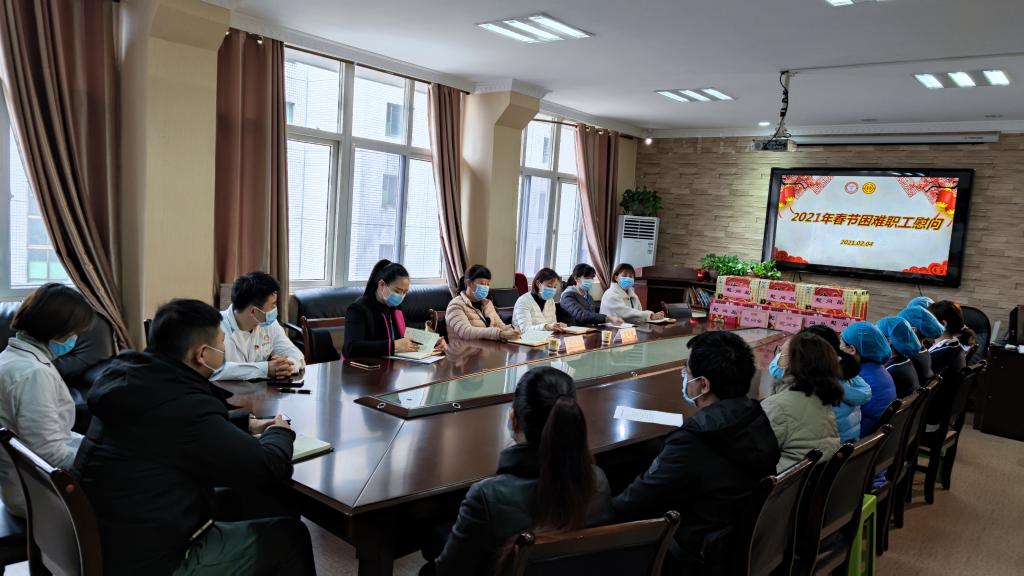 职工冷暖心牵挂,嘘寒问暖道关怀。在2021年新春佳节来临之际,根据贵州省人力资源和社会保障厅《关于开展2021年春节慰问省直机关事业单位困难家庭职工有关事宜的通知》(黔人社通〔2020〕229号)和教育工会《关于开展2021年元旦春节期间送温暖活动的通知》(黔教工字〔2021〕5 号)精神,口腔医(学)院工会按照常态化疫情防控有关要求,于2月4日在行政楼五楼会议室开展了2021年春节困难职工慰问活动。院党委书记张军梅、党委副书记何雨羲出席活动,党委办公室、院长办公室、人事科等相关职能部门负责人和困难职工代表参加活动。慰问活动由工会主席杨蕾主持。