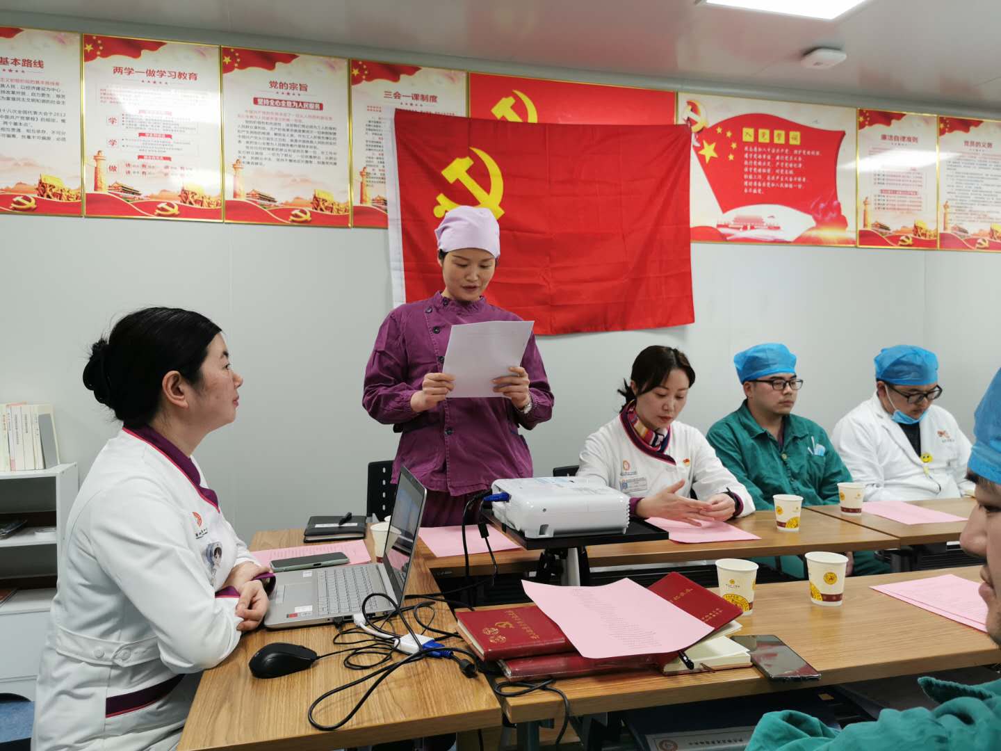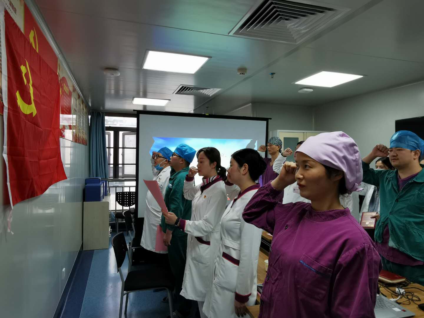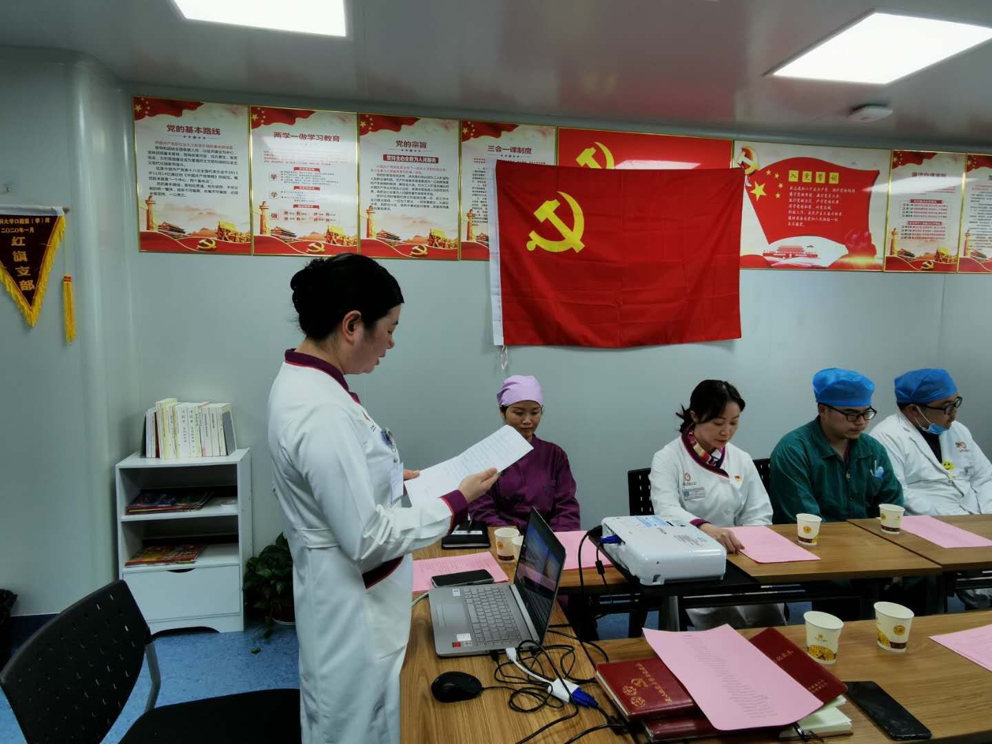 11月2日,贵州医科大学口腔医(学)院教工八支部在活动室开展了“预备党员入党宣誓暨党员重温入党誓词”主题党日活动,以此激励党员同志规范言行,牢记党的宗旨,时刻不忘党员的责任与担当,同时欢迎洪梅同志加入教工八支部。活动由组织委员、第二党小组组长胡赟主持,教工八支部全体党员、预备党员、入党积极分子参加活动。