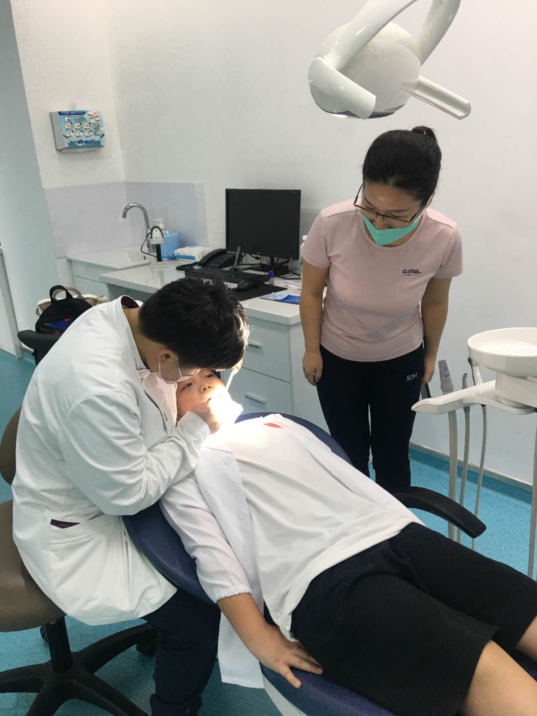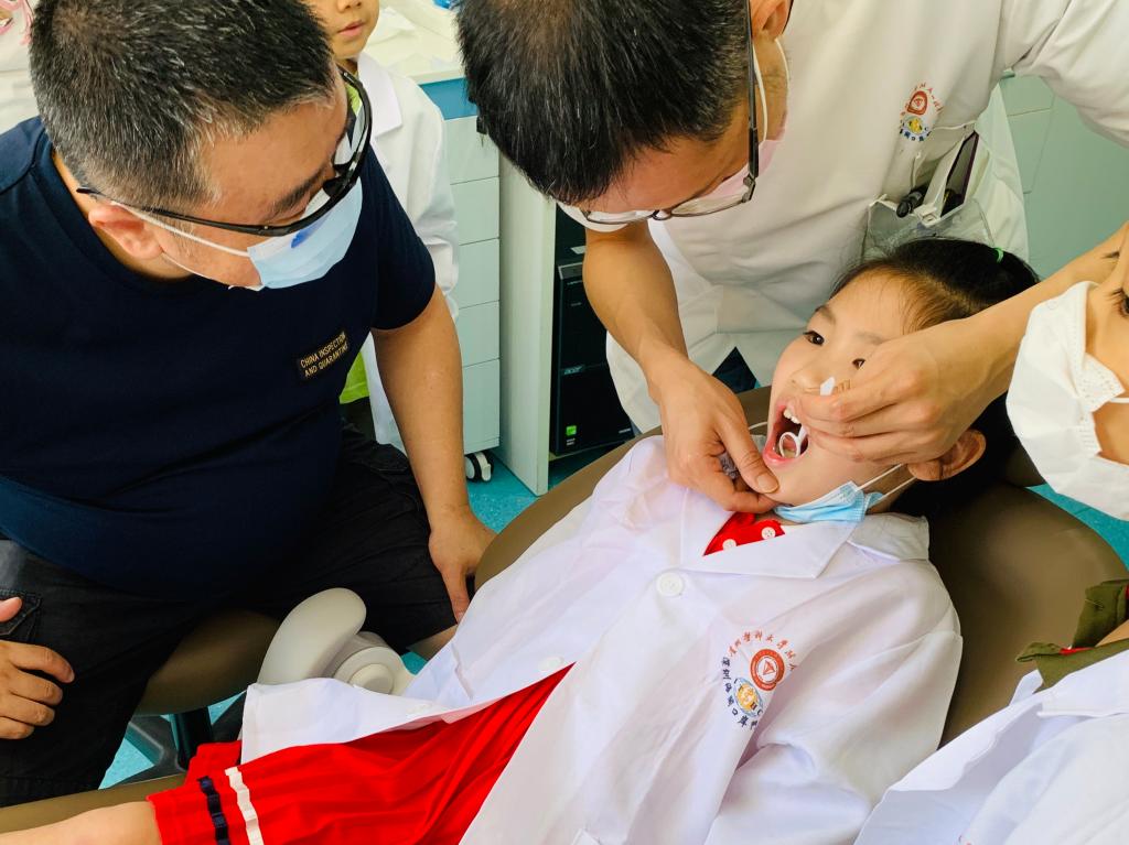 口腔健康检查活动中还设计了亲子互动环节,医护人员指导小朋友对家长进行口腔检查,通过让小朋友体验作为“小牙医”的切身感受,不仅加强小朋友们对牙齿保健的意识,消除小朋友看牙的恐惧心理。