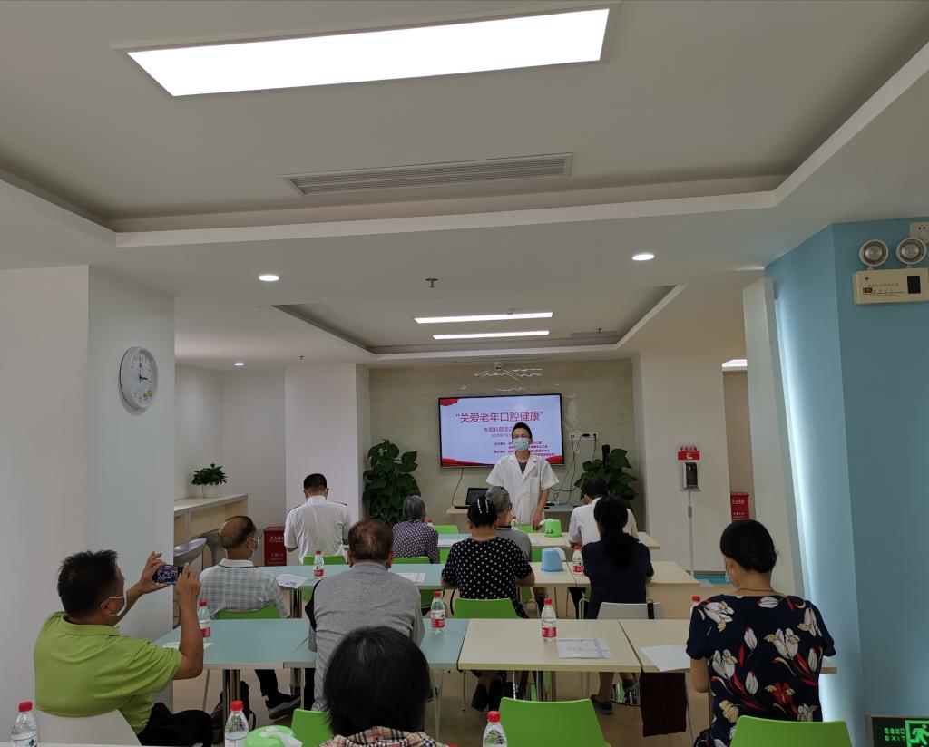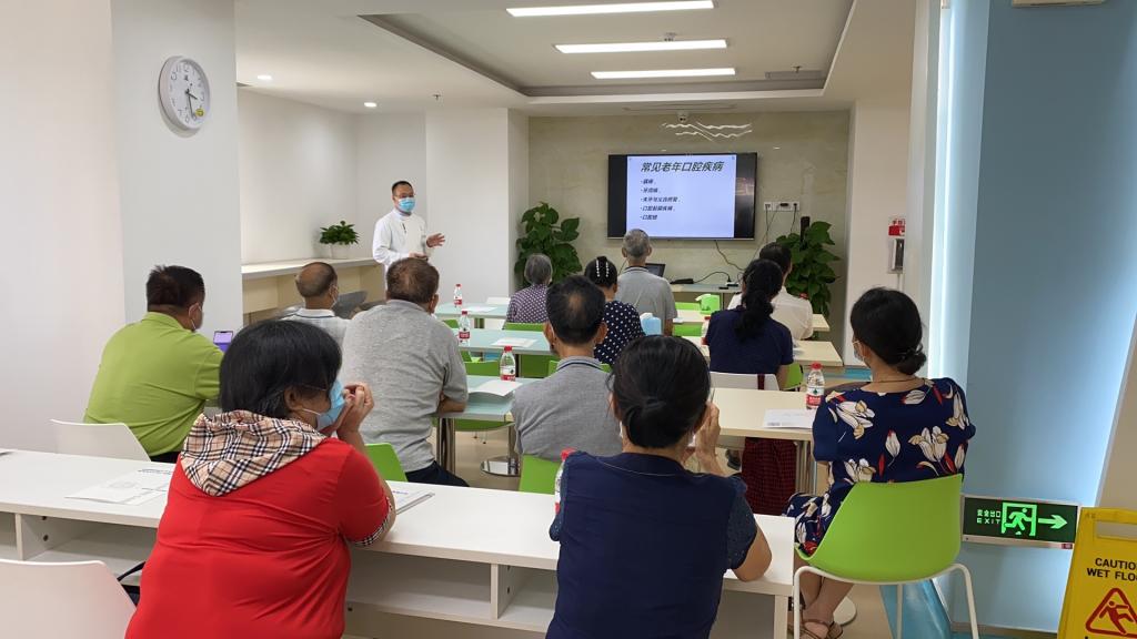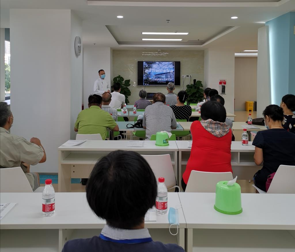 此次关爱老年口腔健康专题科普讲座,主要内容包括《老年口腔卫生保健》、《牙缺失种植牙修复相关常识》和口腔检查,由口腔颌面外科主治医师陈友利、口腔综合科医师李治主讲。讲座主要围绕老年口腔保健目标、如何开展口腔保健教育、常见老年口腔疾病、老年口腔人群居家口腔卫生防护建议、牙缺失种植牙修复相关常识等内容进行科普宣教,目的是让大家了解老年口腔卫生保健相关知识、并对老年人常见口腔疾病、假牙的保养、口腔卫生防护等进行科普。针对老年人所重点关注的问题,根据老年人口腔的生理特点制定个性化的口腔卫生指导建议。