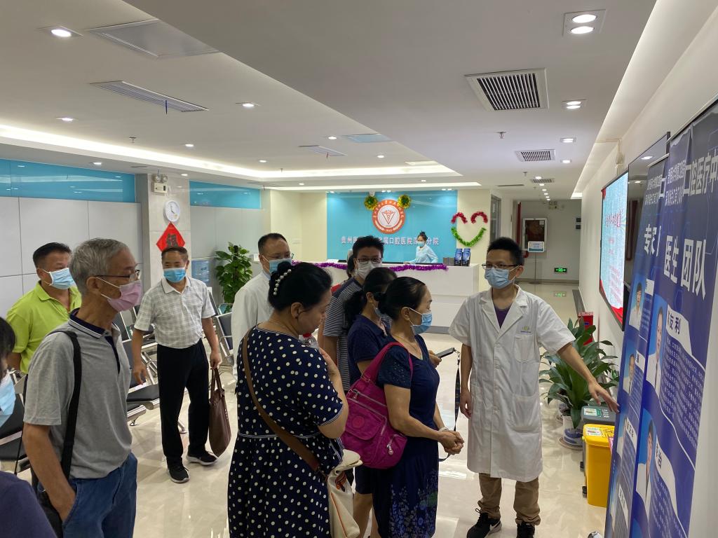 讲座结束后,参与活动的离退休干部参观了口腔医疗中心。口腔颌面外科主治医师陈友利为参观人员详细介绍了口腔医疗中心,包括口腔内科、口腔颌面外科、口腔修复种植科、口腔正畸科、儿童口腔科、口腔影像科、口腔种植手术室等科室的基本情况以及各科室主要的特色业务、配备的先进设备等。