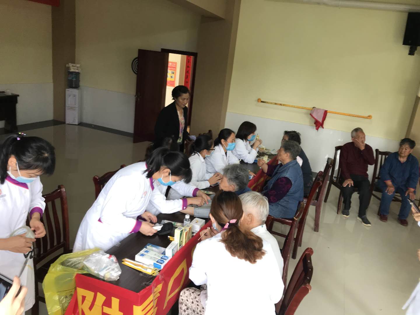 义诊开始前,党支部书记蔡扬及党员王珣通过视频展示及现场讲解的方式,为老年人科普了牙齿的护理方法,例如巴氏刷牙法,牙线及牙缝刷的正确使用方法等对老年人常见口腔疾病、义齿保养及拔牙的相关禁忌症进行了讲解针对老年人的口腔特点制定具有个人特色的口腔卫生指导。义诊现场医护人员老年人进行免费口腔健康咨询检查,进行血压、血糖等项目的检测,并送出20多护牙礼品,让老年服务中心的老年人足不出户就能享受到专业的口腔检测及诊疗服务