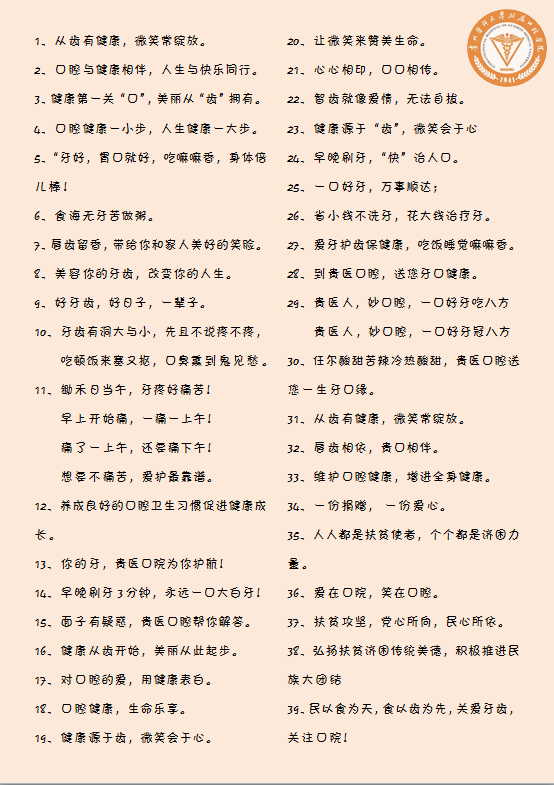 前期,院团委向全院青年医护员工进行广泛征集,并从中甄选出39条通俗易懂、朗朗上口的口腔知识科普小标语,制成横幅及贴纸,或在义诊中将贴纸赠予乡民,或教会走访贫困户的小朋友熟读熟记,方便乡民理解记忆,从小朋友做起,大力宣扬口腔卫生知识。
