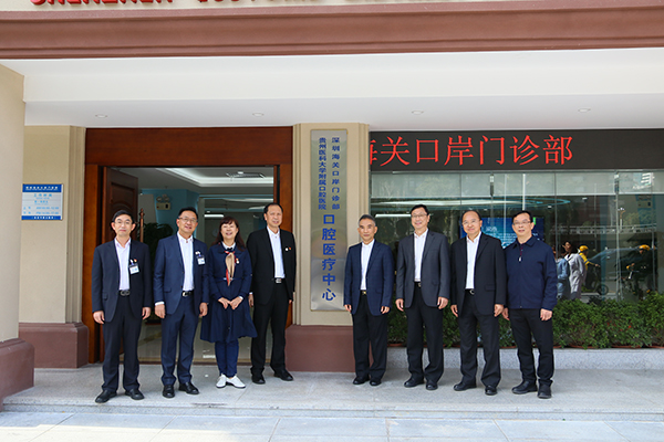 十一时整,深圳海关党委书记、关长陈小颖,党委委员、副关长夏新生,保健中心主任谢聪贤,保健中心副主任陈英周和贵州医科大学党委书记林昌虎,口院党委书记张军梅,党委副书记、院长马洪,副院长唐正龙共同为口腔中心揭牌。在揭牌仪式前,双方一起参观了深圳海关口腔医院门诊部,表示希望通过此次强强合作,共同努力,建设成具有良好口碑、品牌及实力的口腔医疗中心,达到“口腔健康、造福一方”的目标,实现资源共享、优势互补,互惠互利,共同为口腔医疗事业的发展而努力。
