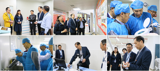 会前,林昌虎实地走访了附属口腔医院消毒供应中心、综合急诊科、儿童口腔科、正畸科诊间支付系统(全省第一家)、VIP特诊科和大厅党建墙以及口腔医(学)院临床技能实验室、行政楼办公等区域。