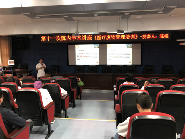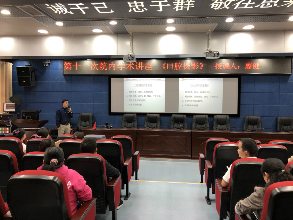 研究生科研管理科主任廖健、院感染管理科医师陈锐分别作题为《口腔摄像》和《医疗废物管理培训》的专题讲座。讲座由医务科主任王刚主持,共计80余人参会。