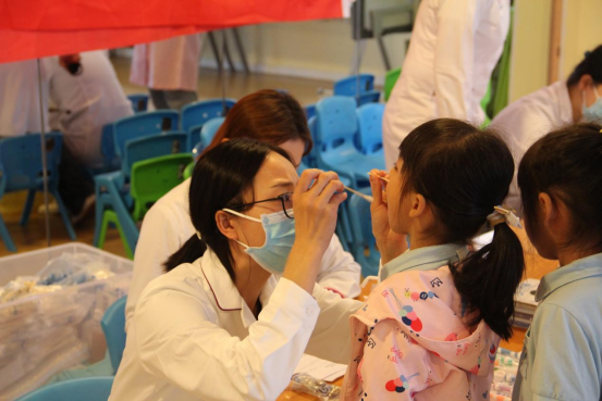 随后,义诊团队为小朋友们进行口腔健康检查,针对各种不同的口腔健康问题建立专属档案并制定治疗计划,在分发档案时,让老师及家长充分了解孩子的口腔情况并积极配合治疗。活动结束后,医护人员还贴心地赠送给每位小朋友一份口腔健康小礼物。
