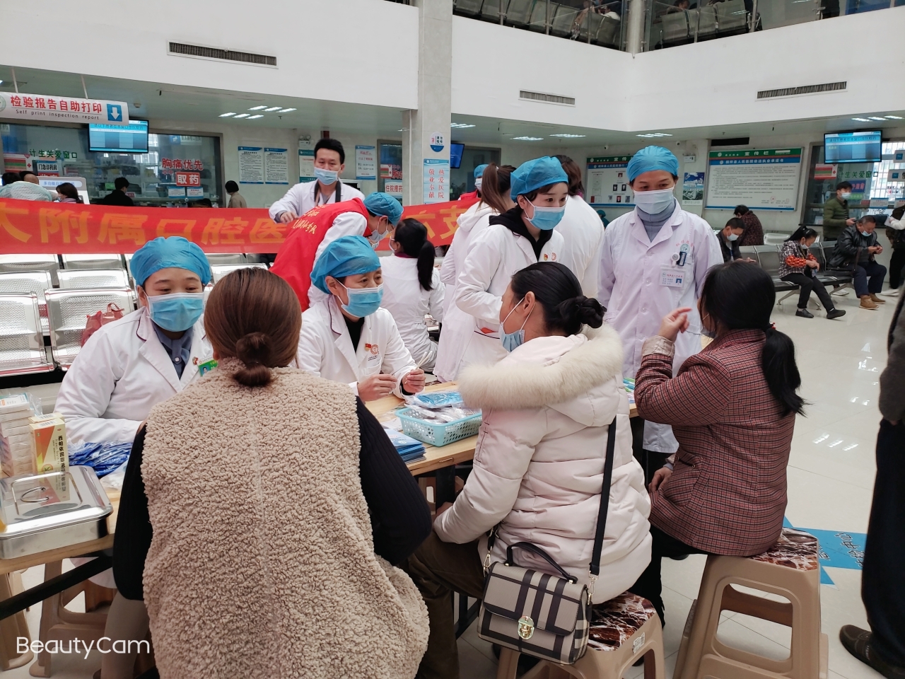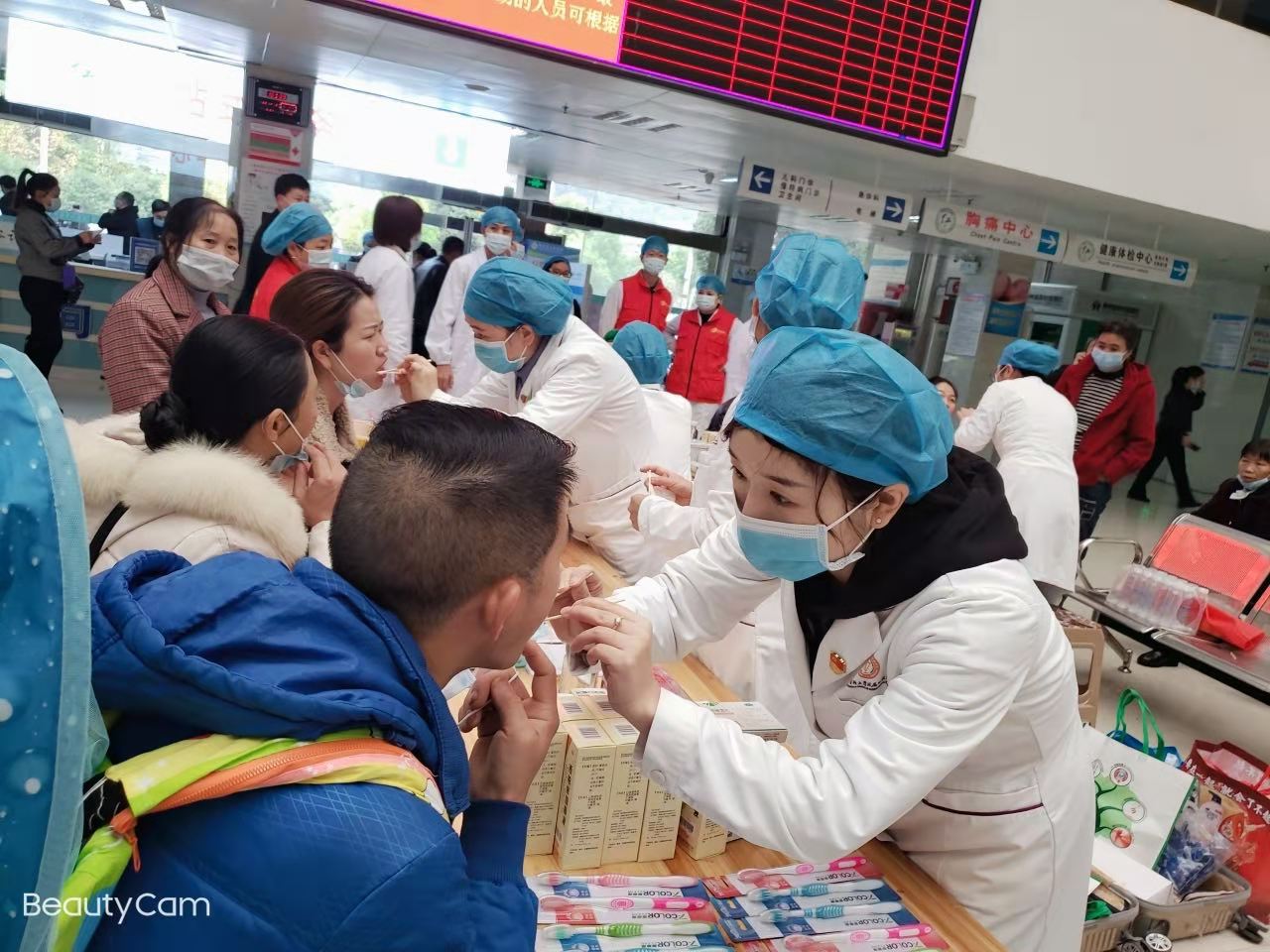 义诊现场来往人员络绎不绝,牙周黏膜科医护团队应用专业技能为当地患者提供优质的口腔诊疗服务,积极为患者制定诊疗方案,并耐心为患者和家属科普“健康口腔,牙周护航”的理念。除义诊外,医护人员还积极宣传口腔健康知识,免费测量血压,发放口腔保健用品,有效利用此次现场活动的机会,科普口腔疾病早期预防的理念,达到“治未病”的效果。