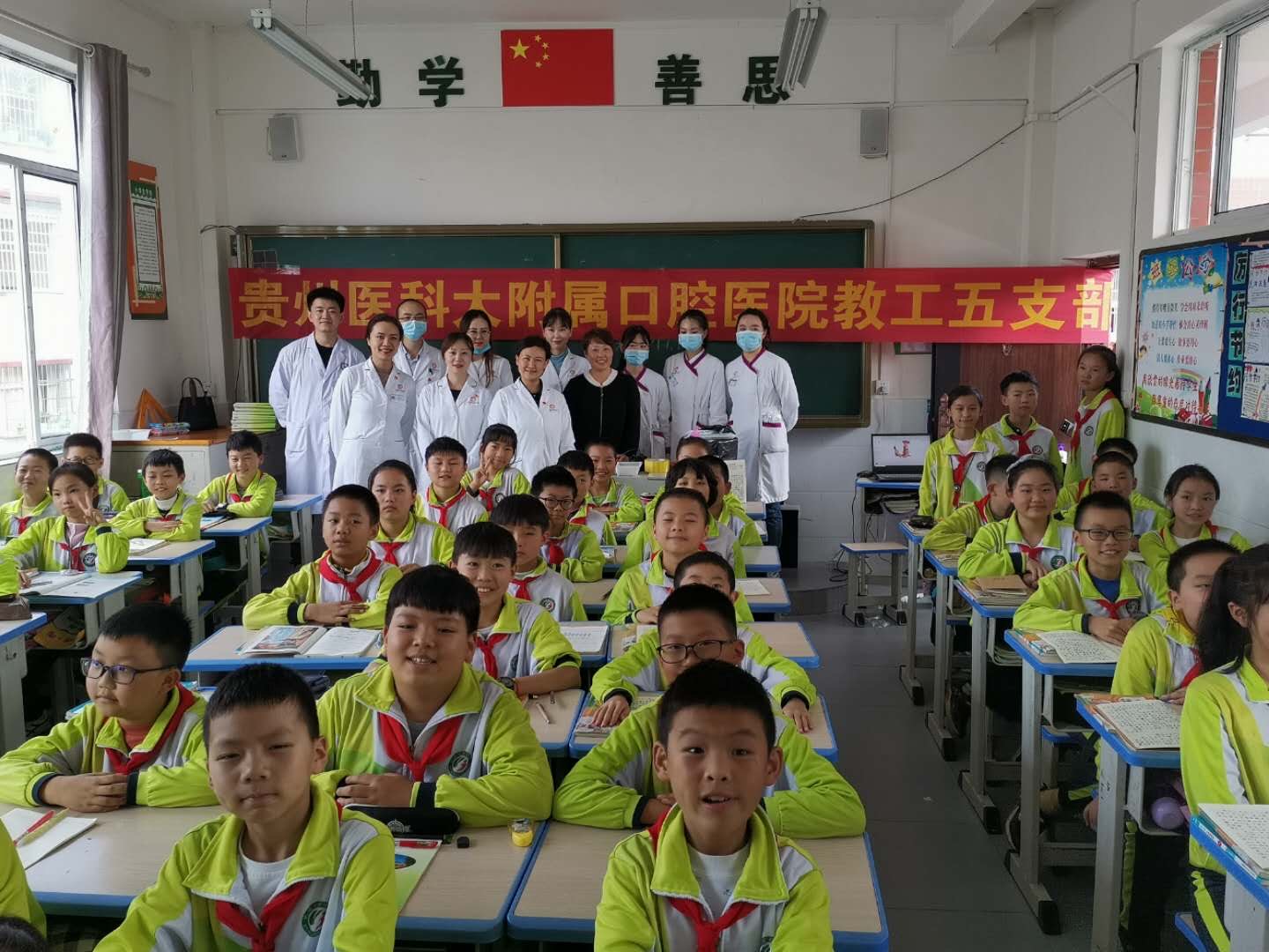 近期,小艾电竞官方网站教工第五党支部、瓮安县中医院外妇科党支部走进瓮安县实验学校联合开展了“党建促健康 爱牙在行动”主题活动。小艾电竞官方网站教工第五党支部书记贾莹和第八党支部书记吴珊带领支部党员,携手瓮安县中医院副院长丁光红等党员同志及医护志愿者一行28名工作人员组成了一支“口腔义诊小分队”,到瓮安县实验小学开展口腔健康检查、知识讲座等志愿服务。