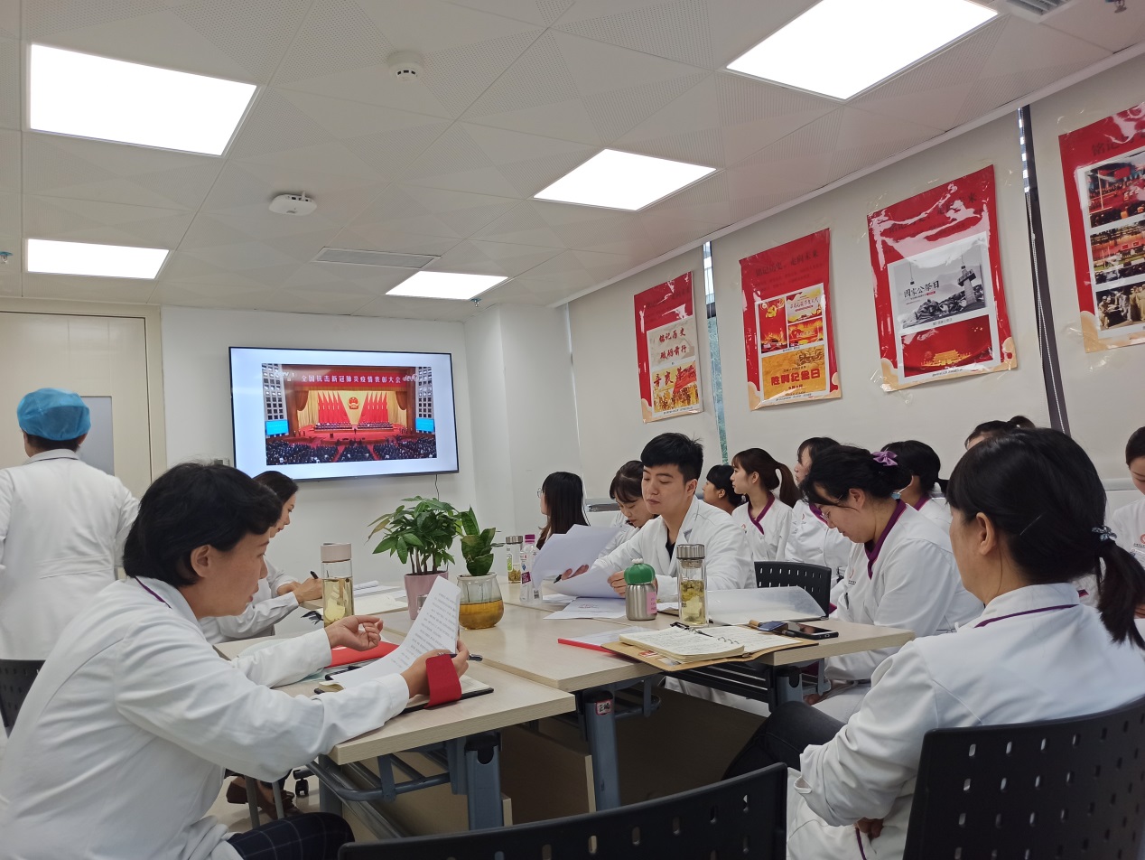 最后支部书记贾莹作总结讲话,指出党员干部不仅要在思想上受洗礼,还要在行动上践行初心,要深入基层,做好群众思想工作,牢记党的使命,恪守对党的承诺,立足本职争当先锋,为医院和科室发展贡献力量。