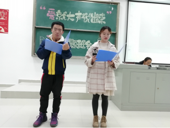 2018级学生在南校区7401教室开展了“爱,就大声说出来”感恩主题班会。学校国资处副处长杨冰、小艾电竞