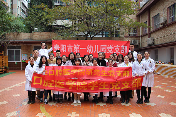 “为贵州人民口腔卫生健康服务”的理念,11月20日、21日,学生党支部书记胡睿带领学生党支部及研究生党支部37名学生党员,分别到贵阳市第一幼儿园总院和花果园分园,对600余名小朋友开展题为“爱牙护齿,从小做起”的口腔健康宣教活动。