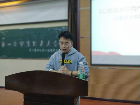 会上,刘逸洲介绍了大会的筹备情况和学生会候选人的推荐工作情况,并在全体代表齐唱国歌后,在党委副书记钱禾的委托下对此次大会致开幕词。随后,张婷作学代会代表资格审查报告。此次学代会代表名额严格按照名额分配方案和构成要求,坚持民主集中制原则,选举产生了具有广泛性的111名代表。经过审查,确认这111名代表均符合条件,代表资格全部有效。