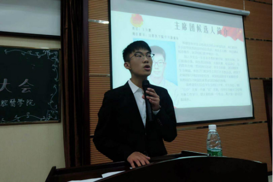 2018-2019年度学生会工作报告》并选举产生学生委员会,四位候选人依次上台介绍了自己的经历及展望,展现了自己的精神面貌与能力。经过一番学生代表的投票和计票后,最终产生了学生会主席唐隽怡,学生会副主席杨泽东、王天彤。