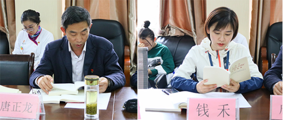 晚上,院党委副书记、院长马洪领学了《习近平关于“不忘初心、牢记使命”论述摘编》中的《把政治建设摆在首位,不断增强“四个意识”、坚定“四个自信”、做到“两个维护”》(P93-P124)、《坚决整治形式主义、官僚主义,加强真抓实干的作风建设》(P185-P200);副院长王永领学了《坚决彻底反对形式主义、官僚主义—毛泽东同志等老一辈革命家的部分论述》中的《形式主义违背马克思列宁的辩证唯物论和历史唯物论、严重损害党的威信》(P1-P4)、《深入学习习近平关于教育的重要论述》中的《坚持党对教育事业的全面领导》(P31-P43)。随后,党政领导班子成员依次作了交流发言。