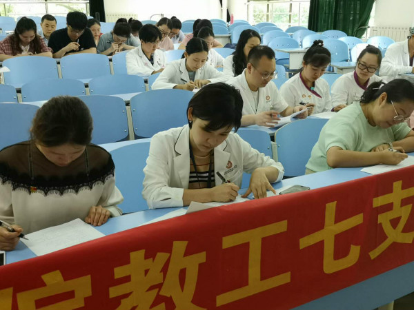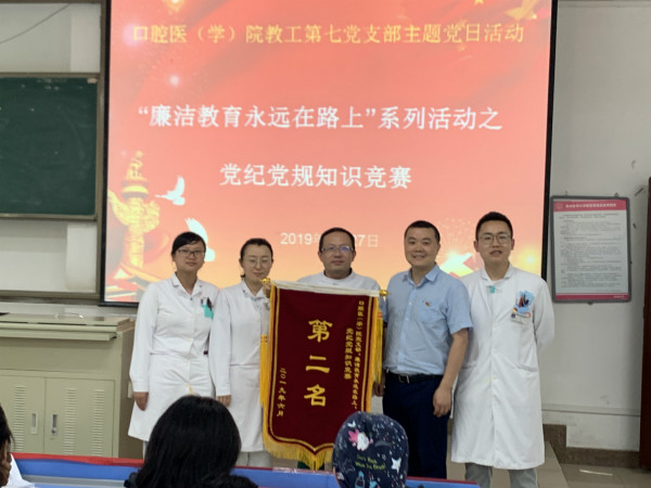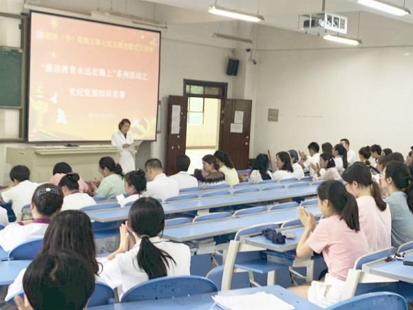 以习近平同志为核心的党中央对加强党风廉政建设和反腐斗争高度重视,采取了一系列强有力的措施,提出“把权力关在制度笼子,老虎苍蝇一起打”,彰显反腐败的强大决心。为进一步增强党员干部维护党规党纪的自觉性、坚定性,响应党中央对党风廉政建设和反腐斗争的高效措施,6月27日,由口腔医(学)院第七教工党支部牵头,全院党支部参与,在北校区基础二号楼2201教室开展了“廉洁教育永远在路上”系列活动之党纪党规知识竞赛。党委书记张军梅、党委副书记钱禾走进支部活动同全院党员共同参与竞赛。