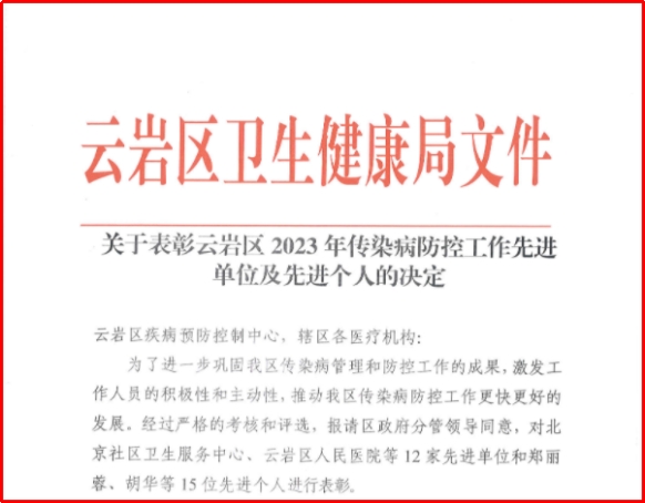 在“省、市级医院传染病防控工作先进单位”评比中获一等奖。