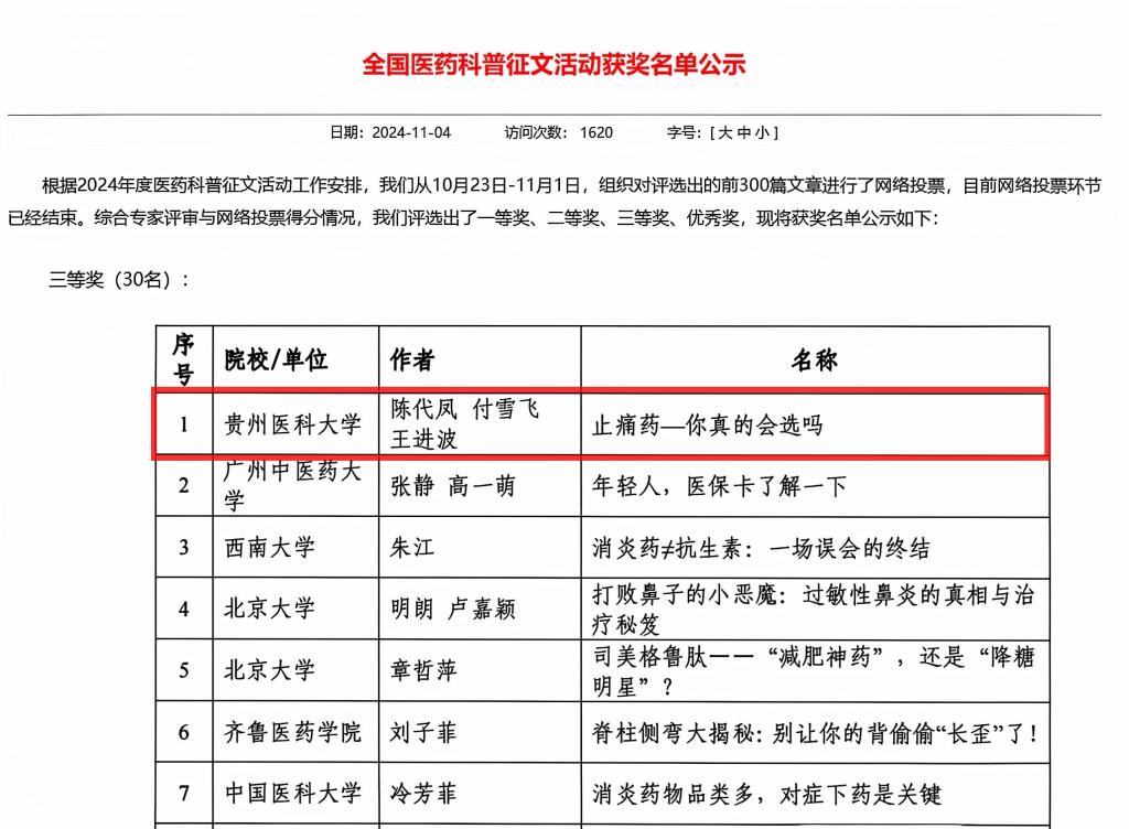 为进一步做好医药科普工作,宣传医保惠民政策,服务人民群众健康,在持续征集“检查检验类”科普文章的基础上,国家医保局举办了2024年度医药科普主题征文活动。小艾电竞 正畸二科团队(陈代凤、付雪飞、王进波)撰写的科普文章——“止痛药—你真的会选吗”在比赛中荣获全国医药科普征文大赛三等奖。