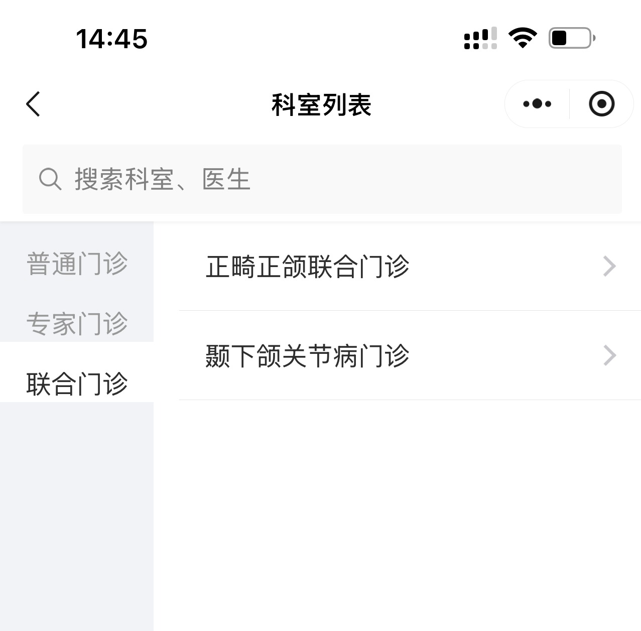 在科室列表中选择联合门诊,我们的正畸-正颌联合门诊及颞下颌关节病门诊就在这里啦。选择相应门诊后,系统会显示门诊的医生列表和可挂号时间。根据您的需求,选择合适的医生和时间。