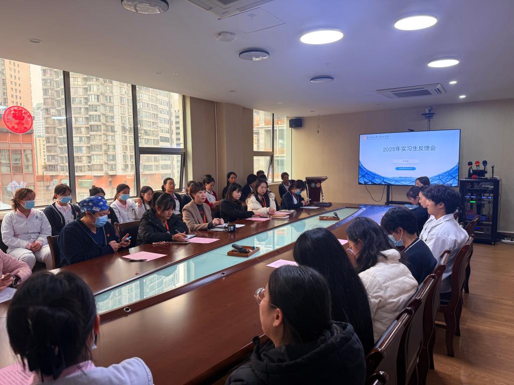 护理部在综合会议室召开2025年度护理实习生反馈座谈会。护理部主任吴姗、片区护士长、各科室护士长、临床带教老师及来自护理职业技术XIAOIDJ